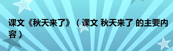 关于课文《秋天来了》,课文 秋天来了 的主要内容这个很多人还不知道,今天菲菲来为大家解答以上的问题,现在让我们一起来看看吧!