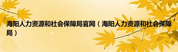 关于海阳人力资源和社会保障局官网,海阳人力资源和社会保障局这个很多人还不知道,今天菲菲来为大家解答以上的问题,现在让我们一起来看看吧!