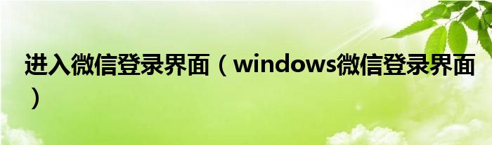关于进入微信登录界面,windows微信登录界面这个很多人还不知道,今天菲菲来为大家解答以上的问题,现在让我们一起来看看吧!