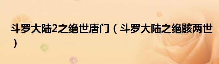 关于斗罗大陆2之绝世唐门,斗罗大陆之绝骸两世这个很多人还不知道,今天菲菲来为大家解答以上的问题,现在让我们一起来看看吧!