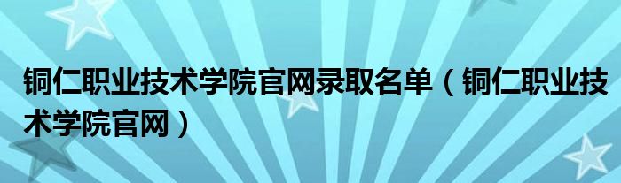 铜仁职业技术学院官网录取名单(铜仁职业技术学院官网)