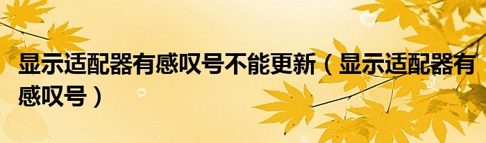 关于显示适配器有感叹号不能更新,显示适配器有感叹号这个很多人还不知道,今天菲菲来为大家解答以上的问题,现在让我们一起来看看吧!
