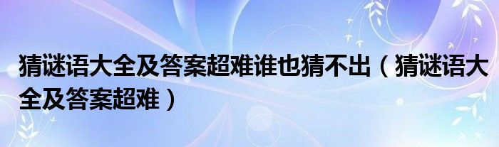 关于猜谜语大全及答案超难谁也猜不出,猜谜语大全及答案超难这个很多人还不知道,今天菲菲来为大家解答以上的问题,现在让我们一起来看看吧!