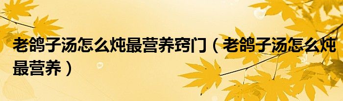 关于老鸽子汤怎么炖最营养窍门,老鸽子汤怎么炖最营养这个很多人还不知道,今天菲菲来为大家解答以上的问题,现在让我们一起来看看吧!