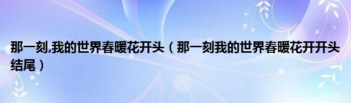 关于那一刻,我的世界春暖花开头,那一刻我的世界春暖花开开头结尾这个很多人还不知道,今天菲菲来为大家解答以上的问题,现在让我们一起来看看吧!
