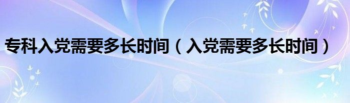 关于专科入党需要多长时间,入党需要多长时间这个很多人还不知道,今天菲菲来为大家解答以上的问题,现在让我们一起来看看吧!