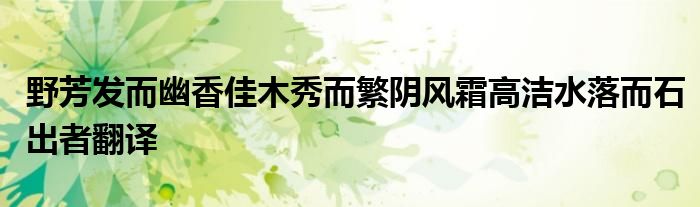关于野芳发而幽香佳木秀而繁阴风霜高洁水落而石出者翻译这个很多人还不知道,今天菲菲来为大家解答以上的问题,现在让我们一起来看看吧!