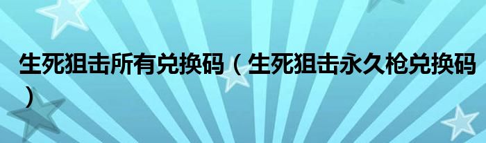 关于生死狙击所有兑换码,生死狙击永久枪兑换码这个很多人还不知道,今天菲菲来为大家解答以上的问题,现在让我们一起来看看吧!