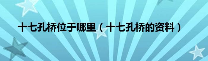 大家好,小晋来为大家解答以下问题,关于十七孔桥位于哪里,十七孔桥的资料很多人还不知道,今天让我们一起来看看吧!