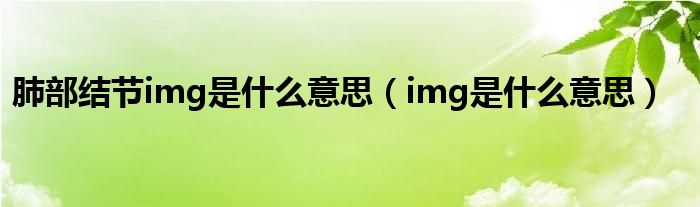 关于肺部结节img是什么意思,img是什么意思这个很多人还不知道,今天菲菲来为大家解答以上的问题,现在让我们一起来看看吧!