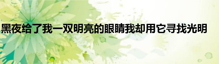 关于黑夜给了我一双明亮的眼睛我却用它寻找光明这个很多人还不知道,今天菲菲来为大家解答以上的问题,现在让我们一起来看看吧!