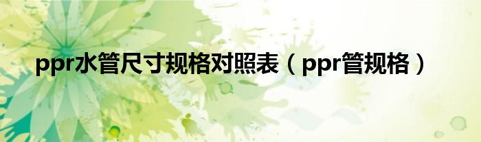关于ppr水管尺寸规格对照表,ppr管规格这个很多人还不知道,今天菲菲来为大家解答以上的问题,现在让我们一起来看看吧!