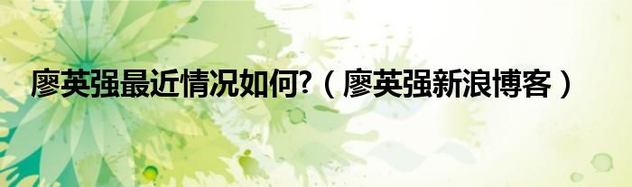 廖英强最近情况如何?(廖英强新浪博客)