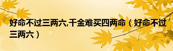 大家好,小晋来为大家解答以下问题,关于好命不过三两六,千金难买四两命,好命不过三两六很多人还不知道,今天让我们一起来看看吧!