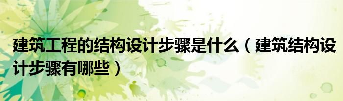 关于建筑工程的结构设计步骤是什么,建筑结构设计步骤有哪些这个很多人还不知道,今天菲菲来为大家解答以上的问题,现在让我们一起来看看吧!