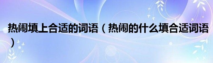 大家好,小晋来为大家解答以下问题,关于热闹填上合适的词语,热闹的什么填合适词语很多人还不知道,今天让我们一起来看看吧!