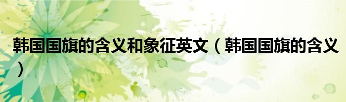 关于韩国国旗的含义和象征英文,韩国国旗的含义这个很多人还不知道,今天菲菲来为大家解答以上的问题,现在让我们一起来看看吧!