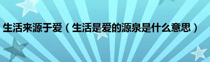 大家好,小晋来为大家解答以下问题,关于生活来源于爱,生活是爱的源泉是什么意思很多人还不知道,今天让我们一起来看看吧!