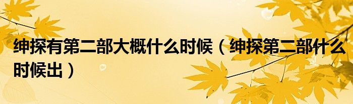 大家好,小晋来为大家解答以下问题,关于绅探有第二部大概什么时候,绅探第二部什么时候出很多人还不知道,今天让我们一起来看看吧!
