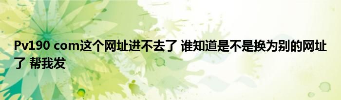 关于Pv190 com这个网址进不去了 谁知道是不是换为别的网址了 帮我发这个很多人还不知道,今天菲菲来为大家解答以上的问题,现在让我们一起来看看吧!
