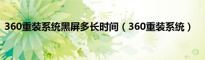 大家好,来宝来为大家解答以下问题,360重装系统黑屏多长时间,360重装系统很多人还不知道,今天让我们一起来看看吧!