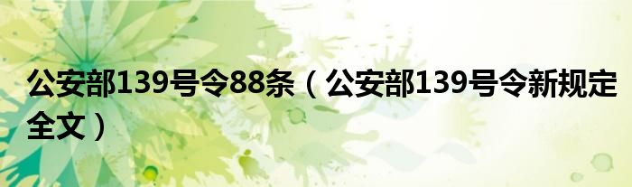 关于公安部139号令88条,公安部139号令新规定全文这个很多人还不知道,今天菲菲来为大家解答以上的问题,现在让我们一起来看看吧!