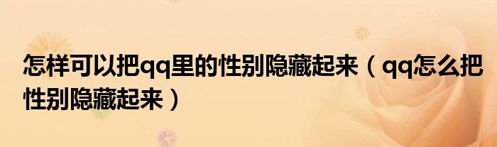 大家好,小晋来为大家解答以下问题,关于怎样可以把qq里的性别隐藏起来,qq怎么把性别隐藏起来很多人还不知道,今天让我们一起来看看吧!