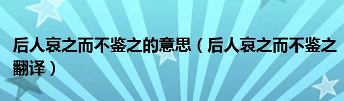 关于后人哀之而不鉴之的意思,后人哀之而不鉴之翻译这个很多人还不知道,今天菲菲来为大家解答以上的问题,现在让我们一起来看看吧!