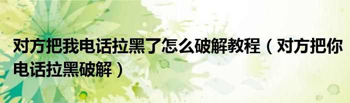 大家好,小晋来为大家解答以下问题,关于对方把我电话拉黑了怎么破解教程,对方把你电话拉黑破解很多人还不知道,今天让我们一起来看看吧!