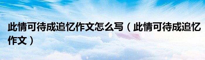关于此情可待成追忆作文怎么写,此情可待成追忆作文这个很多人还不知道,今天菲菲来为大家解答以上的问题,现在让我们一起来看看吧!