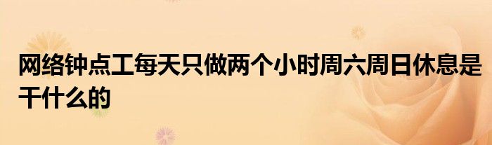 关于网络钟点工每天只做两个小时周六周日休息是干什么的这个很多人还不知道,今天菲菲来为大家解答以上的问题,现在让我们一起来看看吧!
