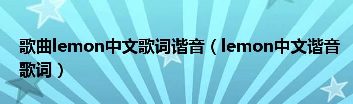 关于歌曲lemon中文歌词谐音,lemon中文谐音歌词这个很多人还不知道,今天菲菲来为大家解答以上的问题,现在让我们一起来看看吧!