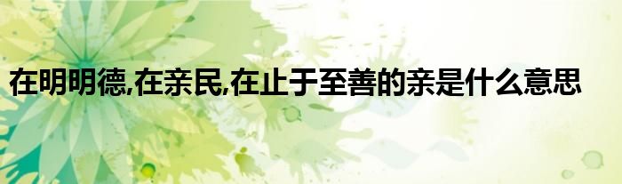 关于在明明德,在亲民,在止于至善的亲是什么意思这个很多人还不知道,今天菲菲来为大家解答以上的问题,现在让我们一起来看看吧!