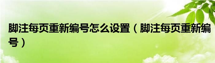 关于脚注每页重新编号怎么设置,脚注每页重新编号这个很多人还不知道,今天菲菲来为大家解答以上的问题,现在让我们一起来看看吧!