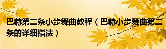 关于巴赫第二条小步舞曲教程,巴赫小步舞曲第二条的详细指法这个很多人还不知道,今天菲菲来为大家解答以上的问题,现在让我们一起来看看吧!