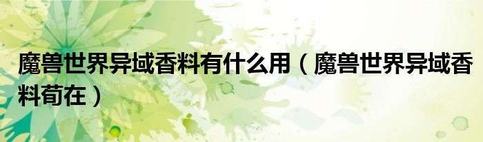 关于魔兽世界异域香料有什么用,魔兽世界异域香料荀在这个很多人还不知道,今天菲菲来为大家解答以上的问题,现在让我们一起来看看吧!