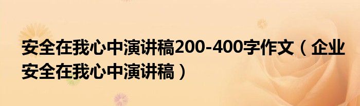 关于安全在我心中演讲稿200-400字作文,企业安全在我心中演讲稿这个很多人还不知道,今天菲菲来为大家解答以上的问题,现在让我们一起来看看吧!