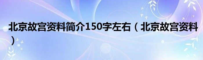 关于北京故宫资料简介150字左右,北京故宫资料这个很多人还不知道,今天菲菲来为大家解答以上的问题,现在让我们一起来看看吧!