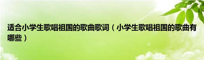 关于适合小学生歌唱祖国的歌曲歌词,小学生歌唱祖国的歌曲有哪些这个很多人还不知道,今天菲菲来为大家解答以上的问题,现在让我们一起来看看吧!