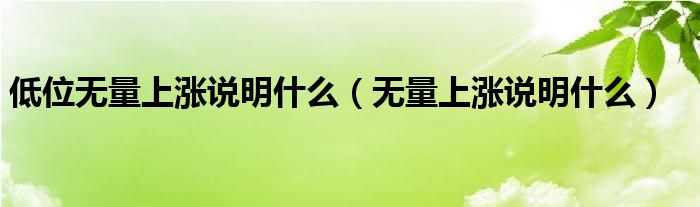 关于低位无量上涨说明什么,无量上涨说明什么这个很多人还不知道,今天菲菲来为大家解答以上的问题,现在让我们一起来看看吧!