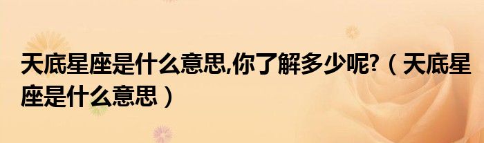 关于天底星座是什么意思,你了解多少呢?,天底星座是什么意思这个很多人还不知道,今天菲菲来为大家解答以上的问题,现在让我们一起来看看吧!
