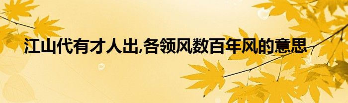 关于江山代有才人出,各领风数百年风的意思这个很多人还不知道,今天菲菲来为大家解答以上的问题,现在让我们一起来看看吧!