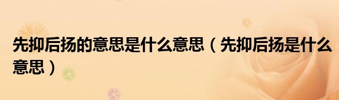 关于先抑后扬的意思是什么意思,先抑后扬是什么意思这个很多人还不知道,今天菲菲来为大家解答以上的问题,现在让我们一起来看看吧!
