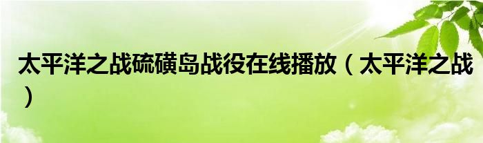 关于太平洋之战硫磺岛战役在线播放,太平洋之战这个很多人还不知道,今天菲菲来为大家解答以上的问题,现在让我们一起来看看吧!