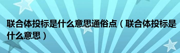 联合体投标是什么意思通俗点(联合体投标是什么意思)