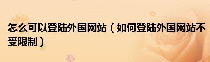 怎么可以登陆外国网站(如何登陆外国网站不受限制)