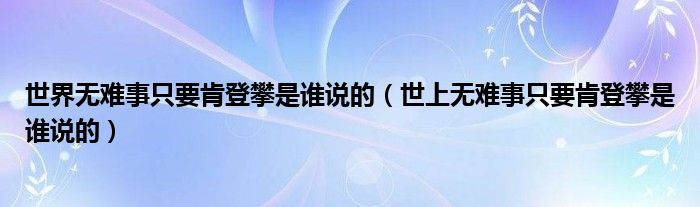世界无难事只要肯登攀是谁说的(世上无难事只要肯登攀是谁说的)