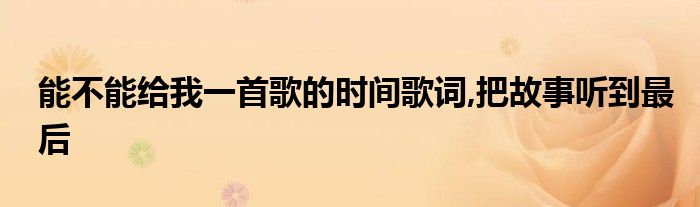 关于能不能给我一首歌的时间歌词,把故事听到最后这个很多人还不知道,今天菲菲来为大家解答以上的问题,现在让我们一起来看看吧!