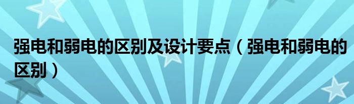 关于强电和弱电的区别及设计要点,强电和弱电的区别这个很多人还不知道,今天菲菲来为大家解答以上的问题,现在让我们一起来看看吧!