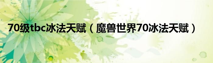 关于70级tbc冰法天赋,魔兽世界70冰法天赋这个很多人还不知道,今天菲菲来为大家解答以上的问题,现在让我们一起来看看吧!